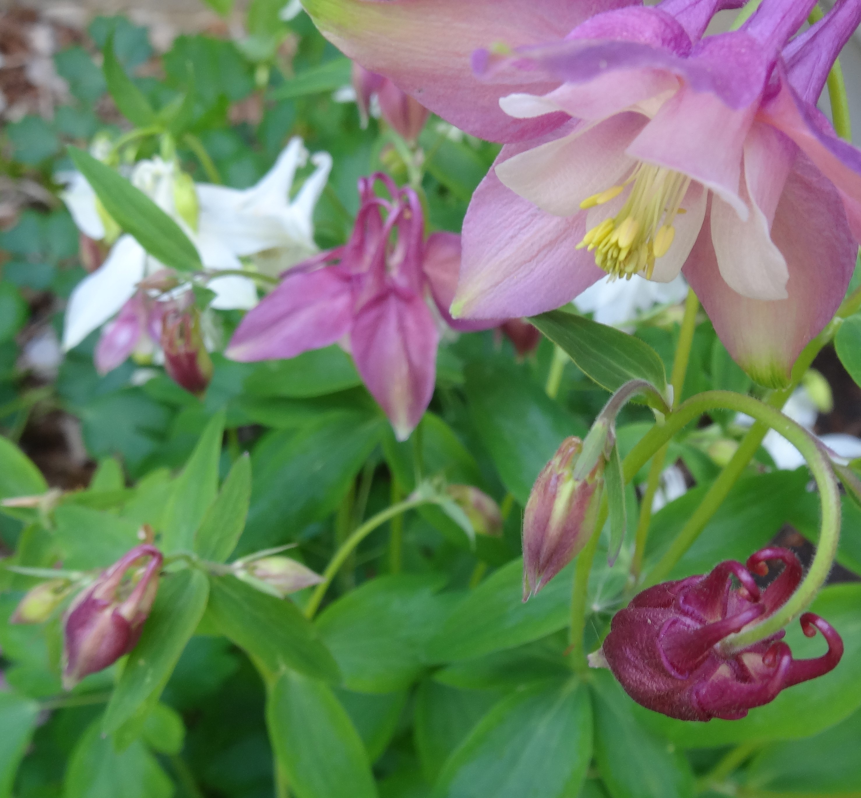 Columbine — A flower that is both beautiful and edible.  The flowers are high in nectar and therefore can have a hint of sweetness.  The roots are used to stop diarrhea and the flowers and seeds are used for the liver, jaundice, and kidney stones.  Leaves are used for aches and mouth/throat sores as lotions.
